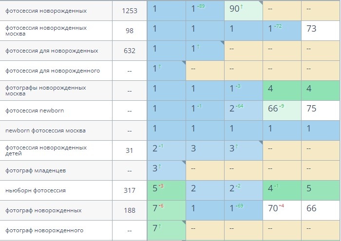 Ко мне на продвижение пришел сайт по услугам частного фотографа для новорожденных. Свою работу, как обычно, я начал с технического аудита. Просмотрел весь сайт на предмет грубых технических ошибок. Сайт был сделан на специальном конструкторе для фотографов, поэтому в своем функционале он был очень ограничен. Но я взял этот сайт, потому что все запросы тематики уходили на главную страницу, и по сути, продвинуть нужно было только ее. Задача не сильно сложная. Затем я сделал анализ коммерческих факторов и структуру продвигаемой страницы. На основе анализа составил ТЗ на доработку. Так как я не разбирался в этом конструкторе, то доработки отдал клиенту делать самостоятельно. Когда доработки были сделаны, я провел текстовую оптимизацию страницы и после этого ее позиции стали заметно расти. Чтобы ускорить рост, мы включили накрутку поведенческих факторов в Яндексе. В итоге, в течение месяца, почти все запросы зашли в ТОП 10, большинство в ТОП 1-3. На скрине виден результат. После этого, я н