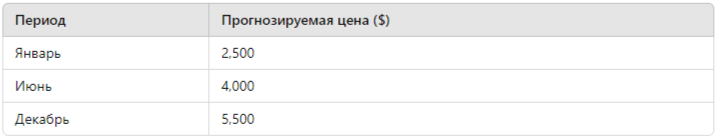Таблица 1: Прогнозы цен на Ethereum в 2024 году