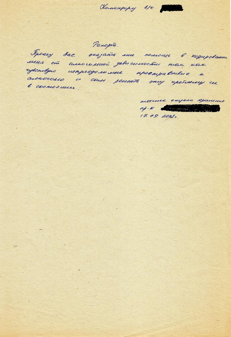Прошло ещё пару месяцев. Михалыч так и не пил. Но однажды вечером пришёл к командиру с просьбой.