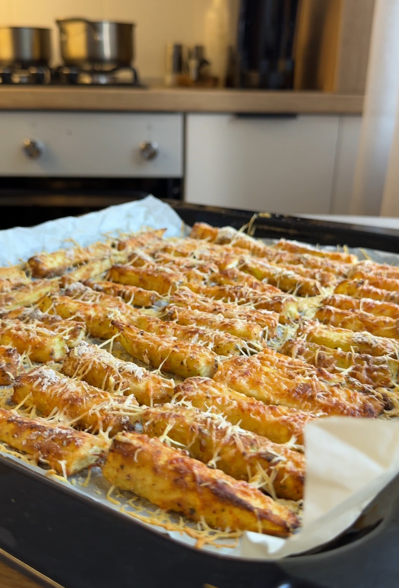 В самый разгар кабачкового урожая мы вечно не знаем куда их деть, как приготовить, с чем приготовить, кому отдать 😁 Этот рецепт безумно простой, да и готовиться очень быстро. Он помог спасти сотни кабачков с дач этим летом. Сохраняете и повторяйте👌🏻 Наше блюдо будет в качестве закуски, отличное дополнение к любому приему пищи! В первую очередь поем кабачок и удаляем кожуру любым удобным способом, даже если он совсем молодой. Нарезка у нас будет брусочками (или палочками). Лучше всего делать небольшими по размеру и, приблизительно, одинаковыми для равномерного запекания. Смешиваем с любимыми специями, у нас были: соль, итальянские травы и копченая паприка. Добавляем панировку или крахмал, мы купили готовую панировку в магазине. Если у вас палочки плохо обваливаются в панировке в миске, то обмакните каждую палочку в ней отдельно. Далее выкладываем на силиконизированный пергамент так, чтобы не было кучи, а каждая палочка лежала отдельно. Присыпаем сверху пармезаном или друг
