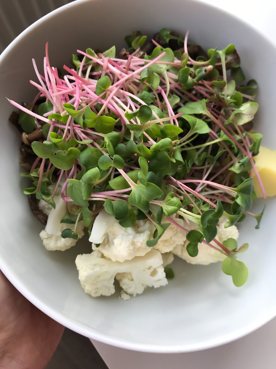 Добавляйте крестоцветные в самые обычные салаты! Например, привычные огурец, томат и лук. Нарежьте мелко цветную капусту, брокколи и немного чеснока, можно добавить ложку сырого масла, побольше микрозелени! Перемешайте хорошенько – и наслаждайтесь! Так вы быстрее приучите себя к большему употреблению сырых овощей.