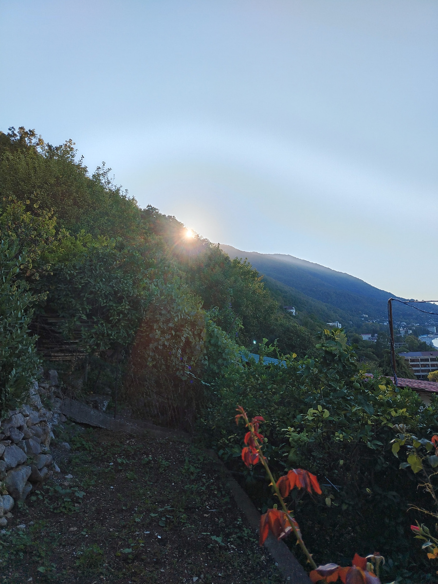 Решила просто описать мой обычный день в Гагре, как я провожу время, чем занимаюсь. Пока погода хорошая, наслаждаюсь солнцем и морем, а экскурсии отложила на попозже. Встаю я а 6.30 - 7.00 часов без будильника. У нас в Сибири уже 11 часов, так что даже поздно. На улице светло, но как-то серо, прохладно, солнца нет. Поэтому пока потягушечки и зарядка. Солнце всходит около 8 утра - резко появляется из-за горы, и все сразу становится ярким и резко теплеет. Так что завтракаю я уже при солнышке, на террасе с видом на море. На завтрак у меня сегодня была овсянка с пюре из перезрелой хурмы. Я перезрелую хурму не люблю, очень сладкая. А в качестве пюре к каше она пошла просто отлично. В десятом часу - на море! Вчера оно было тихое и спокойное, ох уж я наплавалась. А сегодня небольшие волны. Но я тоже отлично поплавала. На пляже я много времени не провожу. Только плаваю, достаточно долго, потом немного отдыхаю и ухожу. Не люблю я лежать на пляже. Не понимаю этого. На пляже мы встречаемс