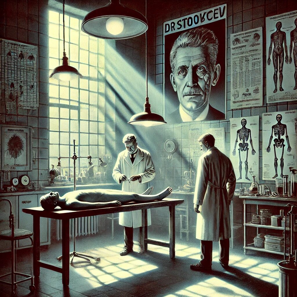 Ростовцев отложил письмо в сторону и задумался. За окном светило солнце, громко чирикали птички, но он их не слышал. Затем доктор встал, надел халат и пошел по бетонной винтовой лестнице глубоко в подвал. Холодный свет ламп резко отражался в хромированных скальпелях. Ростовцев выбрал один и толкнул массивную дверь. В большом стерильном помещении висели на крючьях три безголовых тела.