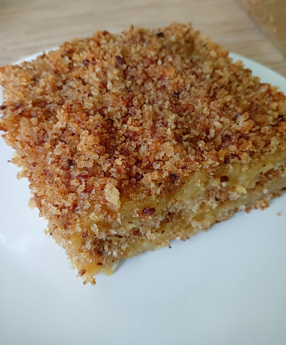 Наипростейшая, почти примитивная в приготовлении, но такая вкусная яблочная выпечка! Обязательно приготовьте такую "Шарлатаночку", я уверена - не пожалеете! По сути, это - яблочная запеканка, но ее кусочки в остывшем виде вполне можно приравнять к тортику. И "коржи" имеются, и фруктовая прослойка! И "коржи" сочные, пропитанные! А шарлоткой "Шарлатанкой" эта выпечка называется потому, что готовится она из сухарей! Но она не менее вкусна, чем обычная, только совсем на иной манер! Готовится "Шарлатанка" еще быстрее, чем обычная шарлотка! Потому что даже взбивать ничего не нужно. В теплом виде "Шарлатанку" можно есть как запеканку (прямо стихи получились😄), а в охлаждённом виде, как я уже писала, это весьма вкусный тортик. Сухари можно приготовить и измолоть самостоятельно , а можно взять готовые панировочные в магазине. Нам потребуется: Яблоки 1-1,2 кг Сухари молотые 250 г ( 2 стакана) Сахар 200г ( 100+100) Масло сливочное 120г (или маргарин) 70г+100г Лимон 1 небольшой ( сок + цедра)