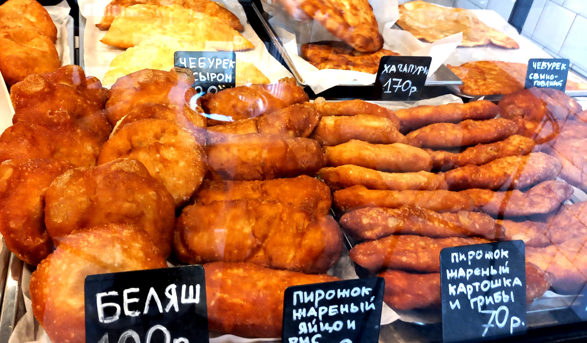 Кафе «Юность» находится на Большой садовой одной из главных улиц Ростова-на-Дону. Вывеска кафе оформлена с использованием шрифтов, которые широко использовались в с 1970-е годы на вывесках кафе в СССР. И это не случайно, потому, что заведение предлагает классический советский ассортимент. Тут беляши, жаренные пирожки, чебуреки. Я не совсем понял почему как бы в «советском» кафе на стенах граффити с современными ростовскими музыкантами? Я распознал участников группы «ППК», которые исполняли электронную музыку и основали коллектив давненько, аж в 1998 году, но все же не в СССР ))) Но вернемся к еде. Я купил красивый хачапури. Вполне нормальный, ничего выдающегося, но есть можно. Но мне кажется я ошибся в выборе. Надо было купить пончик. Их в Юности очень много разных. Хочешь классический советский пончик с заварным кремом за 50 рублей, хочешь английский пончик за 70 рублей с различными начинками. А еще большой выбор различных «хитрых» пончиков за 130 рублей.