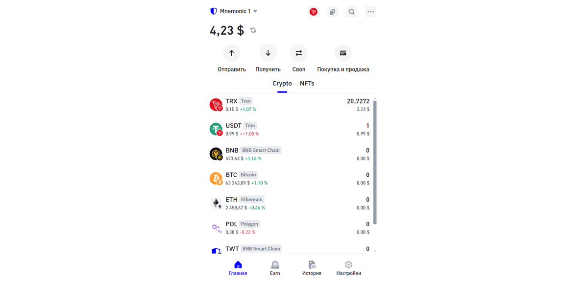 В данной статье мы будем работать с 2 криптовалютами: USDT и TRX.