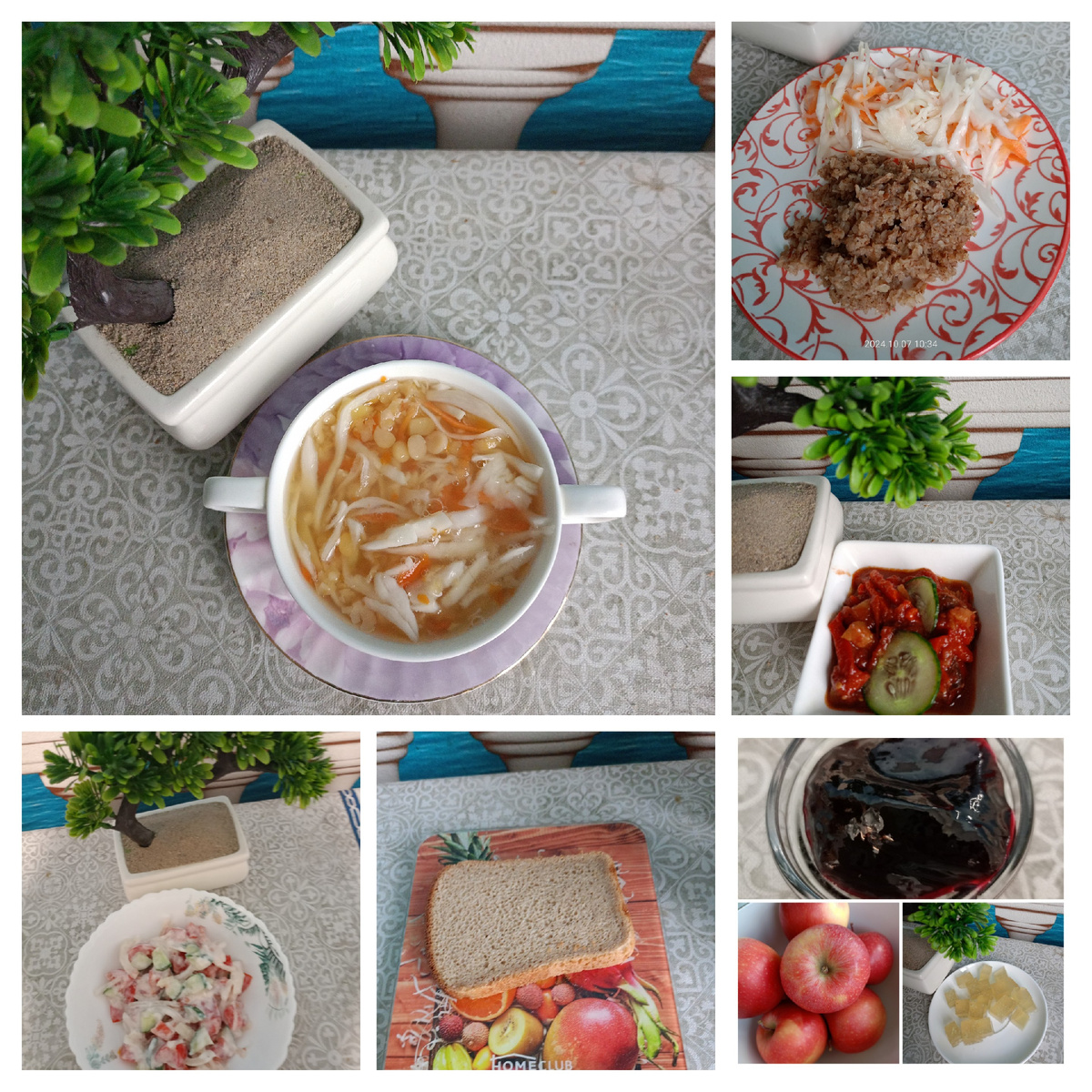 Всем привет! С Вами Татьяна, пенсионерка. Мне 73 года, рост 151 см, вес 56,4 кг ✅ 27.02.23 мой вес был 82 кг. В процессе своего похудения в течение года я сбросила 26 кг лишнего веса. Цель - нормальный вес 53-54 кг для роста 151 см. Это мой личный эксперимент, за которым вы наблюдаете на моем канале. Никому ничего не рекомендую и советов не даю, в споры не вступаю. Спасибо, что читаете! Чат для общения Орден Капустного Листа Если интересно про моё похудение Как я питалась в 2023 году, когда похудела на 25 кг? Дневник питания сейчас Для похудения жиры не должны превышать 25% в суточной норме. *** Соотношение БЖУ сегодня: 18/12/70 Что я съела сегодня: 1-й приём пищи 2-й приём пищи 3-й приём пищи 4-й приём пищи 5-й приём пищи это перекусы в течение дня Итог дня: *** Сегодня план питания не составляла, ела, что придёт в голову. На завтрак заварила гречневые хлопья и поела с квашеной капустой. На обед сварила гороховый суп, добавила в него квашеную капуст