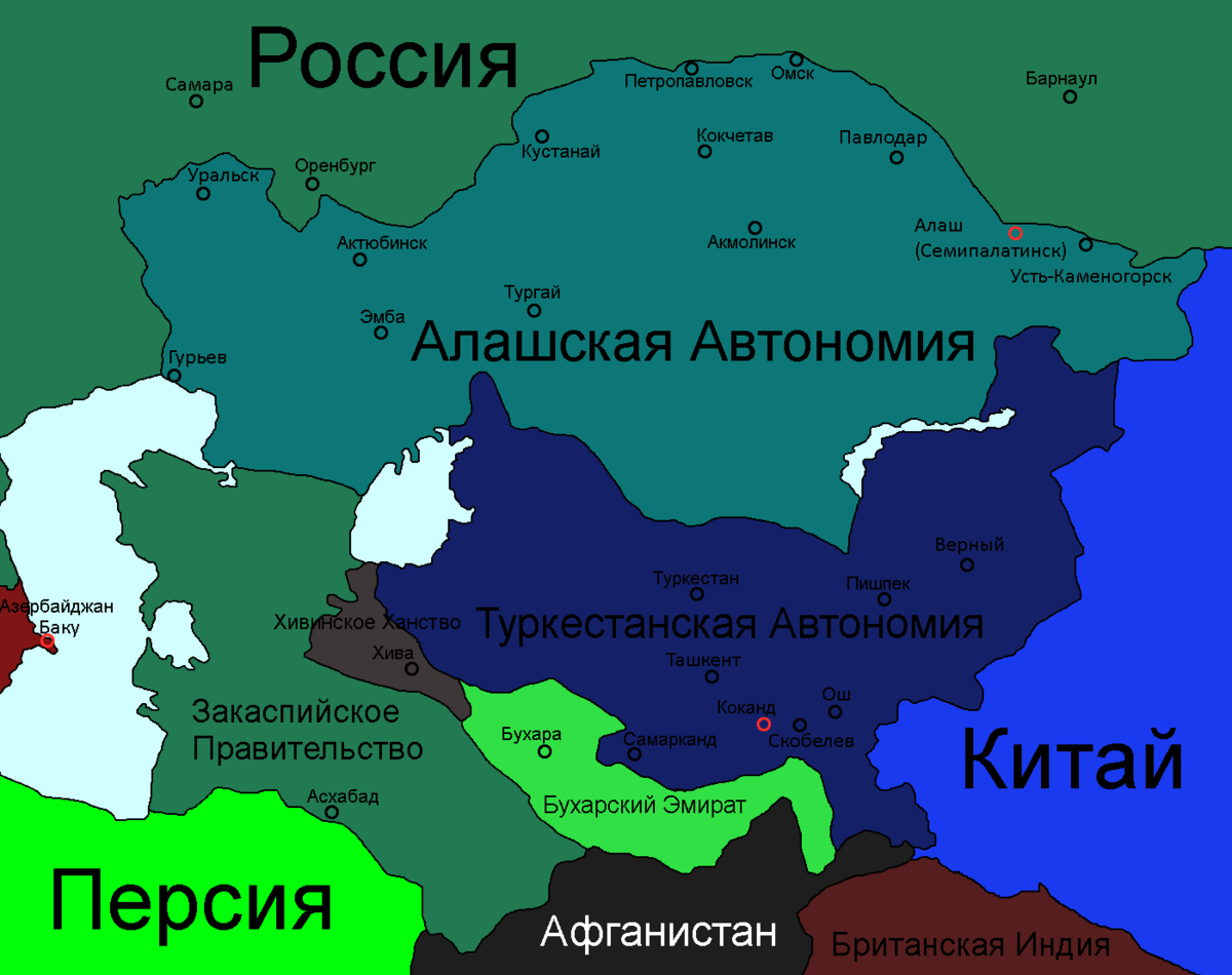 После разгрома белогвардейцев Колчака большевики ликвидировали созданную казахами во время Гражданской войны автономию Алаш Орда и за антисоветскую деятельность арестовали или выслали за пределы Казахстана ряд её лидеров (с. 274).
