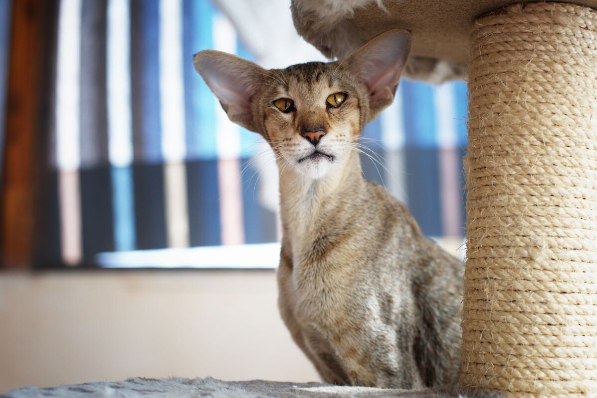 Ориентальная кошка – это настоящее воплощение элегантности и грации. Её стройное, мускулистое тело, длинные конечности и клиновидная голова сразу привлекают внимание. Но главная "изюминка" этой породы – невероятно большие уши, напоминающие опахала. Эти выразительные "локаторы" в сочетании с миндалевидными глазами придают ориенталам поистине инопланетный вид.