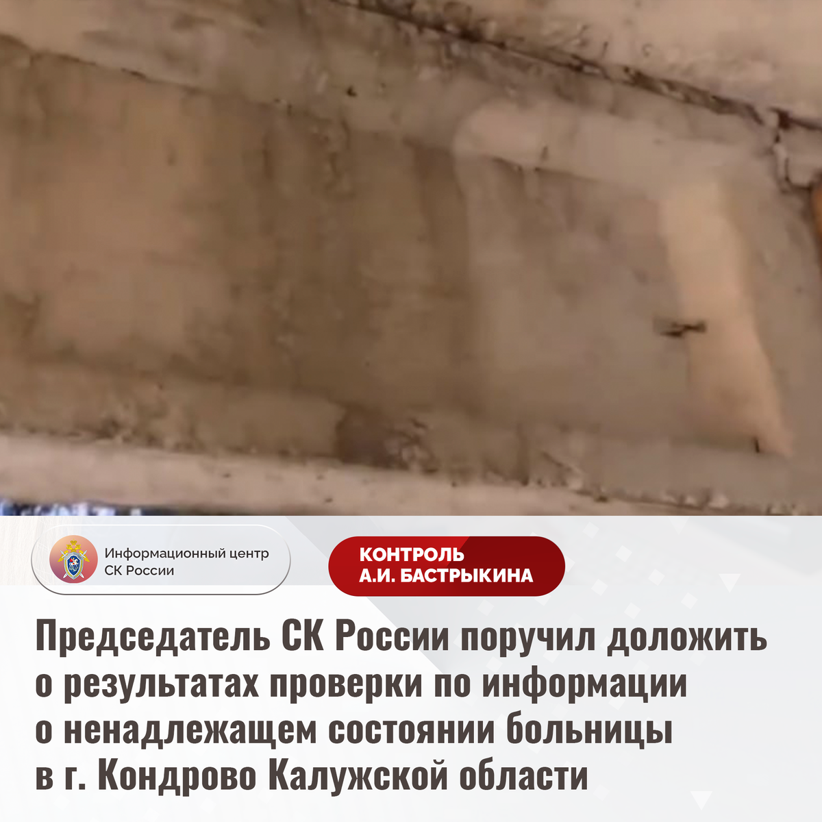 Председатель СК России поручил доложить о результатах проверки по информации о ненадлежащем состоянии больницы в г. Кондрово Калужской области