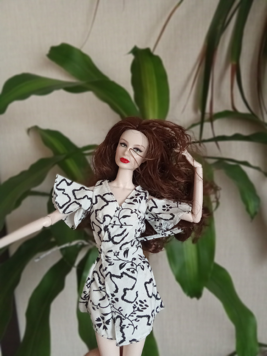 Всем огромный привет 🤗. Очень рада Вас всех видеть 😊 ❤️. Как Вы уже знаете меня зовут Арина и я люблю шить одежду для кукол . Сегодня мы сошьем платье на запах. Это платье я тоже нашла на Pinterest и в нем мне очень понравились рукава. Приступим Выкраиваем детали платья На лице сшиваем выточки На задней детали тоже сшиваем выточки Сшиваем по плечевому шву Сшиваем задние детали платья между собой делаем отстрочку Сшиваем передние детали платья и делаем отстрочку Подворачиваем и подшиваем низ рукава, верхнею часть рукава подворачиваем и подшиваем только небольшую часть где есть ямка. Вшиваем рукав в пройму до подворота Подворачиваем и подшиваем пройму Сшиваем платье по боковому шву С одной стороны оставляем пройму под пояс Подворачиваем и подшиваем низ Подворачиваем и подшиваем перед платья Пояс сшиваем по бокам и выворачиваем , подворачиваем и намётываем Складываем пополам и прошиваем Пришиваем пояс к платью Спасибо, что были со мной до конца 🥰 Если нужны будут выкройки