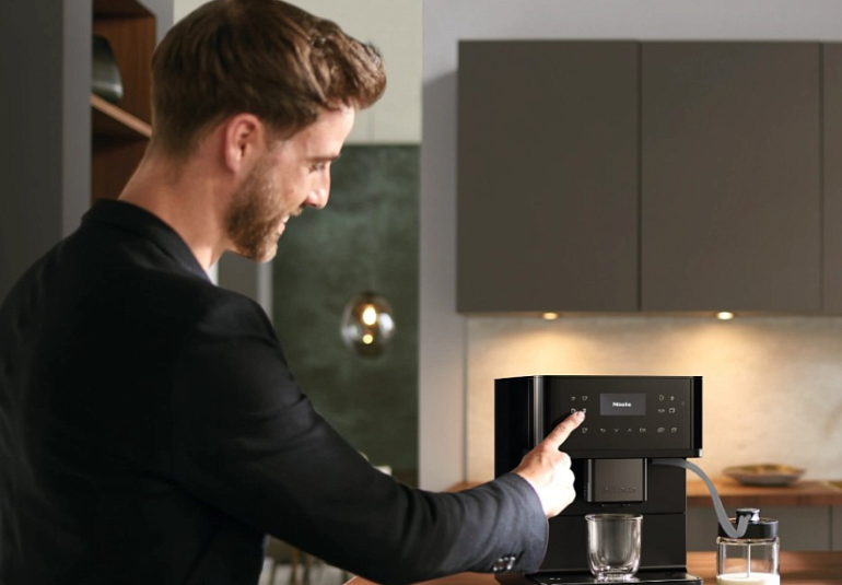 Кофемашина Miele CM 6360 125 Edition — это премиальная модель, сочетающая в себе высокую производительность, инновационные технологии и элегантный дизайн. Разработанная для настоящих ценителей кофе, эта кофемашина предлагает широкий выбор напитков и обеспечивает их идеальное приготовление. Модель отличается простотой в управлении и обслуживании, что делает её идеальным выбором как для дома, так и для офиса. Miele CM 6360 125 Edition выполнена в стильном и современном дизайне с использованием высококачественных материалов. Корпус выполнен в темных оттенках с глянцевой отделкой, что придает устройству элегантный и современный вид. Благодаря компактным размерам (ширина 26 см, глубина 46 см и высота 37 см), кофемашина легко вписывается в любое пространство и не требует много места на кухне или в офисе. Большой цветной TFT-дисплей с сенсорным управлением расположен на передней панели, что обеспечивает легкость использования и быструю настройку необходимых параметров. Стильные линии и проду