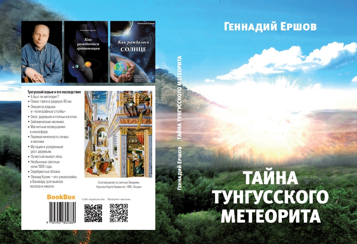 Издана книга, на сей раз физика переплетается с беллетристикой. Со времени падения Тунгусского метеорита прошло уже более века, но тайна до сих пор не раскрыта и продолжает будоражить умы ученых и не ученых тоже. Что за тайна Тунгусского метеорита и что за катастрофа? Ну взорвался метеорит над безлюдной сибирской тайгой и, слава богу, что не в городе. А прилетел бы на 4 часа позднее, то славный город Выборг или Санкт-Петербург, лежал бы в руинах. Тайна обозначилась, когда над Европой с 30 июня по 2 июля 1908 г. трое суток висели серебристые облака и ночью было светло как днем. Позднее, спустя 19 лет, тайна стала еще большей тайной, когда экспедиция Леонида Кулика в 1927 году впервые обозрела уходящий за горизонт настил из поваленного леса. На месте катастрофы перед глазами исследователей открылась картина Апокалипсиса! Огромная площадь поваленного леса, скрывалась за горизонтом. Вековые лиственницы и сосны вперемежку с лиственными породами лежали с вывороченными корнями параллельно дру