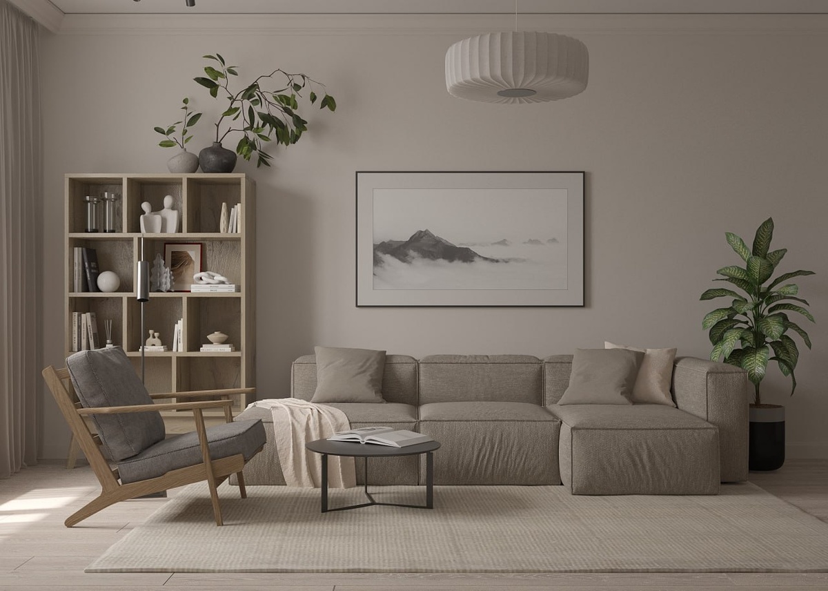 Для вашего вдохновения кухня-гостиная в современном стиле с элементами джапанди🇯🇵 Выполнила ученица нашего флагманского курса, Ивашкович Майя, 39 лет, Москва. Как вам проект? Поделитесь в комментариях 👇