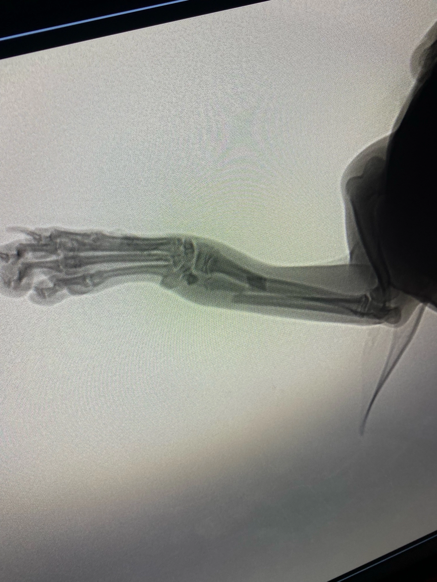 Как это произошло. Был вечер мы сидели с друзьями отдыхали ели шашлык а мой пес бегал с кошкой и бесился , они с кошкой запрыгнули на диван начали бороться . В итоге кот спрыгнул с дивана и побежал на второй этаж и мой пес тоже решил спрыгнуть с дивана на кафель в итоге приземлился всем весом на левую лапку и начал скулить громко. Я очень сильно испугался подбежал и увидел что он держит свою лапку и не опускает ее . Я сразу понял что он ее сломал . Время было позднее и ветеринарные клиники не работали , я позвонил и договорился на завтра чтоб мы приехали и нам сделали рентген. На следующий день мы приехали в клинику нам сделали рентген и сказали что у песика перелом со смещением. А я хотел чтоб это был просто какой- нибудь ушиб потому что операция стоит очень дорого особенно на таких собак как шпиц . Я согласился на операцию сказали что будут резать лапку вставлять болты и 2 спицы , за такую операцию запросили 26 000 рублей . Сначала собаке ввели наркоз , позже приехал хирург и н