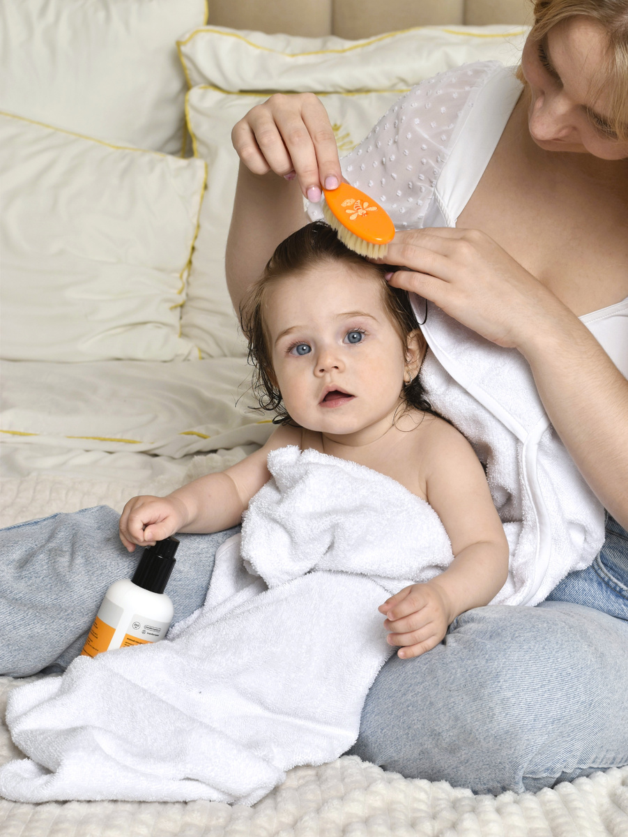 Корочки на коже головы у малышей, также известные как себорейный дерматит или гнейс, возникают из-за избыточного выделения кожного сала и накопления мертвых клеток кожи. Обычно это естественное состояние, которое проходит само по себе, но иногда корочки могут вызывать дискомфорт и беспокойство у родителей. Мягкое увлажнение — перед купанием нанесите на кожу головы увлажняющее масло от BRAND FOR MY SON, которое смягчит корочки и облегчит их удаление. Аккуратное расчесывание — после того, как масло подействует, осторожно расчесывайте волосы малыша мягкой щеткой, чтобы удалить корочки. Мягкое очищение — используйте гель для купания 2 в 1 от BRAND FOR MY SON, который бережно очищает кожу и волосы малыша, не нарушая её естественный баланс, а также способствует мягкому удалению корочек. Регулярный уход — повторяйте процедуру несколько раз в неделю, пока корочки не исчезнут полностью. Увлажняющее масло и гель для купания 2 в 1 от BRAND FOR MY SON — это идеальное сочетание для ухода за не
