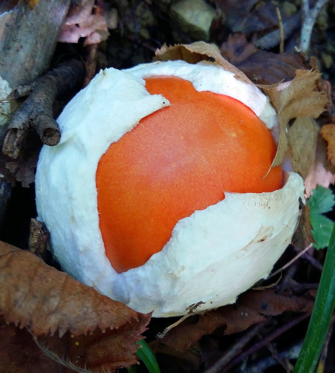 Поход получился Царским - именно мухомор Цезаря и стал безоговорочно грибом дня. Домой приехали 53 штуки в компании с тремя десятками белых грибов. Царских набрал во всех стадиях их развития - тут тебе и кумачевая гладь едва показавшейся шляпки в разрывах бархатной мякоти "киндер-сюрприза"... и алая полусфера-колпак на мощной кремовой ножке с бахрамой юбочки... и раскрытые огромные блюдца шляпок. В последней стадии развития гриб крайне деликатный для транспортировки и желает обращения к себе в соответствии с титулом. Увы, - рюкзак и холщевые сумки далеки от корзин, сохраняющих грибы в целом виде. Поэтому научился отделять шляпки от ножек, складывать их стопкой и аккуратно укладывать в отдельный отсек рюкзака. В таком виде этот драгоценный деликатес вполне нормально переносит мои кругосветные вояжи по просторам Пластунки.