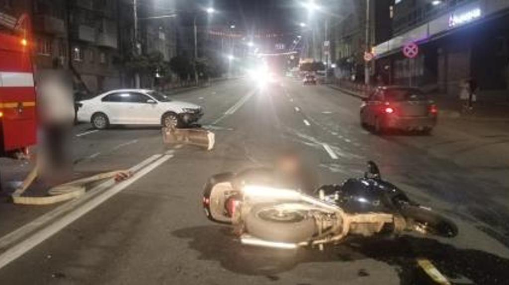 Появилось видео с места столкновения мотоцикла и легковушки в центре Брянска