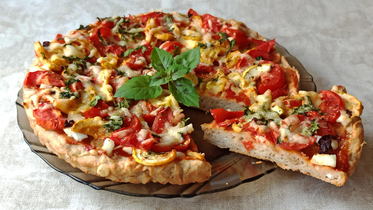 1. Овощная пицца на творожном тесте от Ирины Антошиной.