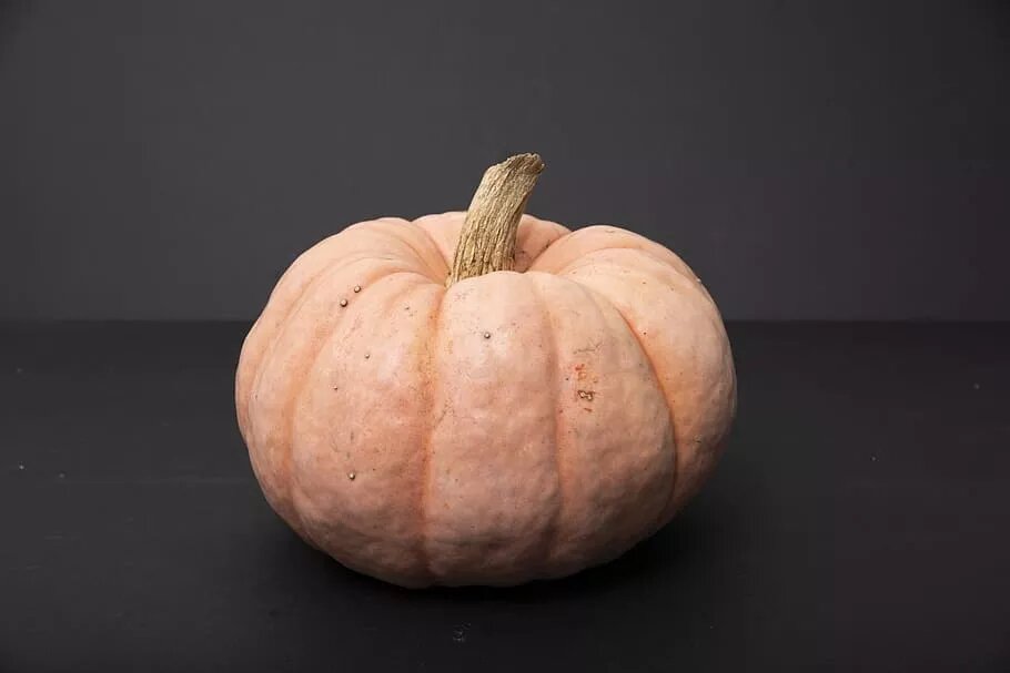 1. Установите тыкву вертикально самой широкой стороной вниз. Поместите её на разделочную доску так, чтобы один из плоских краев, которые вы разрезали, был внизу. Если тыква качается взад-впе