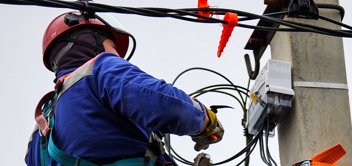 С помощью снаряжения электромонтер поднимается на опору, протягивает к ней самонесущий изолированный провод, устанавливает прибор учета. Клиентам выдают пульт для управления устройством и проводят инструктаж.