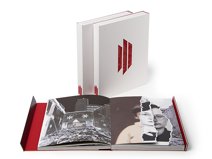 Алексей Партола рассказал о сложностях в процессе изготовления: «Каждый элемент этой книги — совокупность оригинальных и непростых решений. Идея сделать шмутц-титулы из бумаги цвета слоновой кости заставляет четко следить за чередованием тетрадей и полос. Одна из глав книги содержит имитацию рваных полос, мы долго подбирали техническое решение для этого и в итоге сделали сложносоставной нож с мелкими элементами для максимально похожего реза. Внешний короб – жесткая и цельная конструкция, она фиксирует блок за внутреннюю обложку-форзац. Для хорошего раскрытия книги на внутренних сгибах фрезеровали выборку, чтобы дать блоку пространство. Такое изделие достаточно сложно выполнить в одном месте на должном уровне, поэтому пришлось одновременно контролировать несколько производств на каждом этапе.