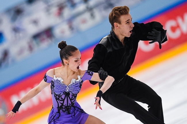 Соревнования первого этапа Гран-При в танцах на льду завершились. И в первую очередь, что бросается в глаза уже сейчас - какое же разнообразие танцев появилось! Первая пятерка - и ни одного повтора не то что по музыке, а даже по идее. Я очень рада, что наши юниоры уверенно делают шаг в сторону зрелищности, многообразия и зрительского интереса. И, разумеется, говоря о первой пятерке, нельзя не отметить новый тренерский штаб, который обосновался на катке "Синяя птица" - Сергея Мозгова и Анны Яновской. Два их дуэта сегодня показали очень достойное катание, желание двигаться вперед и классные постановки. Щелкунчик меня просто покорил, но и Цирк дю Солей оказался тоже прекрасным. Хочется пожелать нашим молодым тренерам не терять запал и радовать зрителей и дальше. Ну а на медалистах мы все же заострим внимание. Зоя ПЕСТОВА / Сергей ЛАГУТОВ Мне нравится этот танец ребят, в нем чувствуются поиски в том числе и тренеров каких-то новых решений. У Сергея в этой программе лидирующая роль и ему уд