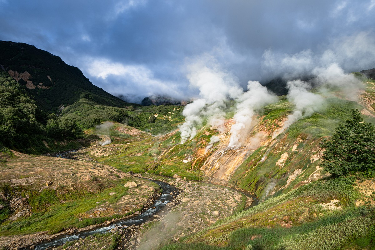 Прогулка от тихоокеанского побережья Камчатки до Долины гейзеров по (почти) туристическому маршруту 264 заняла у нас аж 6 дней (день 1, день 2, дни 3-4, включая один день на прогулку по кальдере Узон, день 5, день 6). Позади непростые, но созерцательные километры, заполнившие долгосрочную память устройств и мозгов :) незабываемыми впечатлениями. Пришло время выдохнуть и добавить впечатлений о конечном пункте нашего пешего приключения - Долине гейзеров. Погулять по ней, да поудивляться гейзерам и прочим вулканическим подземностям.