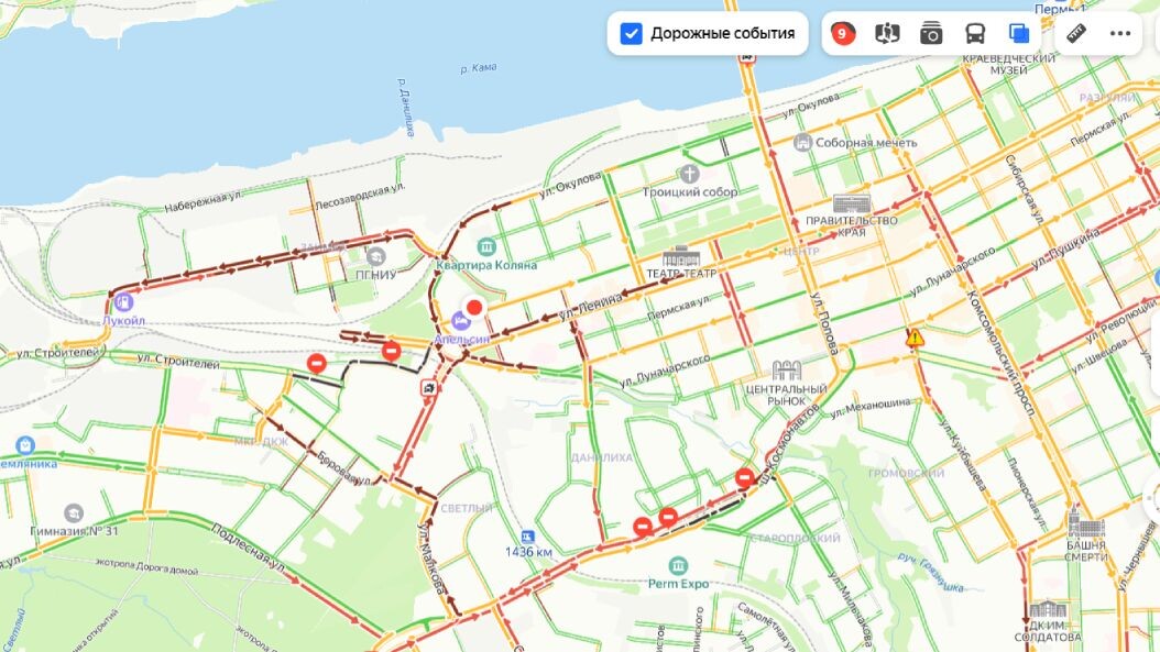 Вечером 8 октября пробки в Перми достигли 9 баллов. Движение транспорта затруднено практически на всех центральных улицах краевой столицы. Дорожную ситуацию осложнили многочисленные небольшие ДТП. По данным пермского Дептранса, отставание общественного транспорта от расписания достигает 30 минут.