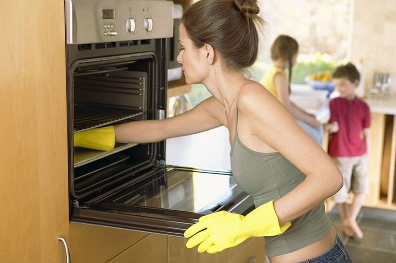 Вопросом, как отмыть духовку, задаются, когда внутри она уже сильно загрязнена. Во время приготовления на стенках духового шкафа остаются остатки жира, нагар и кусочки пищи. В идеале после эксплуатации необходимо вымыть не только стекла, дверцу и противень, но и саму духовку. Однако не все хозяйки придерживаются этих рекомендаций. Духовой шкаф покрыт слоем гладкой эмали, которую легко помыть даже от пригоревшего жира, если делать это регулярно. Описываем алгоритм: Если используете специальные агрессивные средства для чистки духового шкафа, необходимо предварительно ознакомиться с инструкцией. Для некоторых типов техники данное вещество может не подходить. Нельзя забывать о безопасности, поэтому при использовании «химии» следует надевать резиновые перчатки. Нередко мысль о мытье духовки посещает хозяйку уже во время уборки, а в магазин за бытовой химией идти не хочется. От жира и нагара можно избавиться народными способами, которыми пользовались бабушки и мамы. Предлагаем несколько на