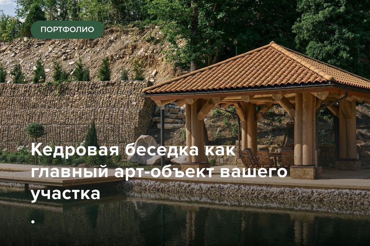 Заморочиться — хорошее или плохое слово для вас? На территории комплекса «Эрива» мы особое внимание уделили зоне отдыха и построили беседку, в которой хочется проводить не меньше времени, чем в красивых интерьерах. Необычность её начинается с колонн. Мы решили сделать массивные опоры и использовали по четыре соединённых между собой бревна для каждой. Так колонны выглядят объёмнее и красивее. Они установлены на постаменты из бетона, отделанные натуральным камнем. Отдельного внимания заслуживает крыша — её одну стоит рассматривать часами, восхищаясь архитектурой и работой мастеров. В солнечный день на ней ещё отражается рябь воды. А это отдельный перформанс, которым можно любоваться, отдаваясь медитативному состоянию. Также потолок украшает люстра, которая очень подходит общей концепции комплекса. В беседке мы установили большой круглый стол, куда можно перенести ужины в летнее время, а также уютно расположиться в подвесном кресле. Детали лучше рассмотреть своими глазами на фот