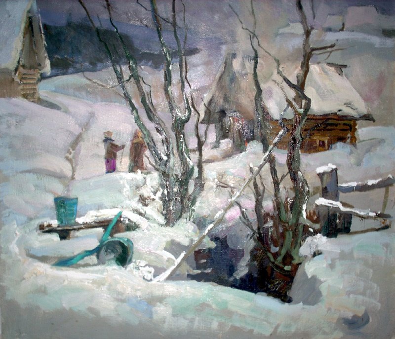 Художник из Псковской области, со дня рождения которого недавно исполнилось сто лет, показался каким-то особенно близким именно в эту промозглую пору – когда совсем близко граница осени и зимы. Мало кто любит затяжные дожди, хмурые сумерки с редким мокрым снегом, что в городе, что в деревне. Но ведь проживать это малоприятное время года все равно как-то надо. А помочь в этом могут картины Алексея Алексеевича Большакова (1922 – 2014). Петроградец по рождению, этот художник, выпускник института имени Репина, фронтовик, много лет прожил в городе Великие Луки в Псковской области. Там он возглавлял художественные мастерские, позже трудился на комбинате декоративно-прикладного искусства и скульптуры. В 70-е годы проектировал и участвовал в реконструкции Братского кладбища. Рисовать сын отставного поручика царской армии начал с четырех лет. Но свои лучшие картины Алексей Алексеевич написал в деревне Харин Бор неподалеку от города Новосокольники, где жил с семьей много лет в доме у озера, ко