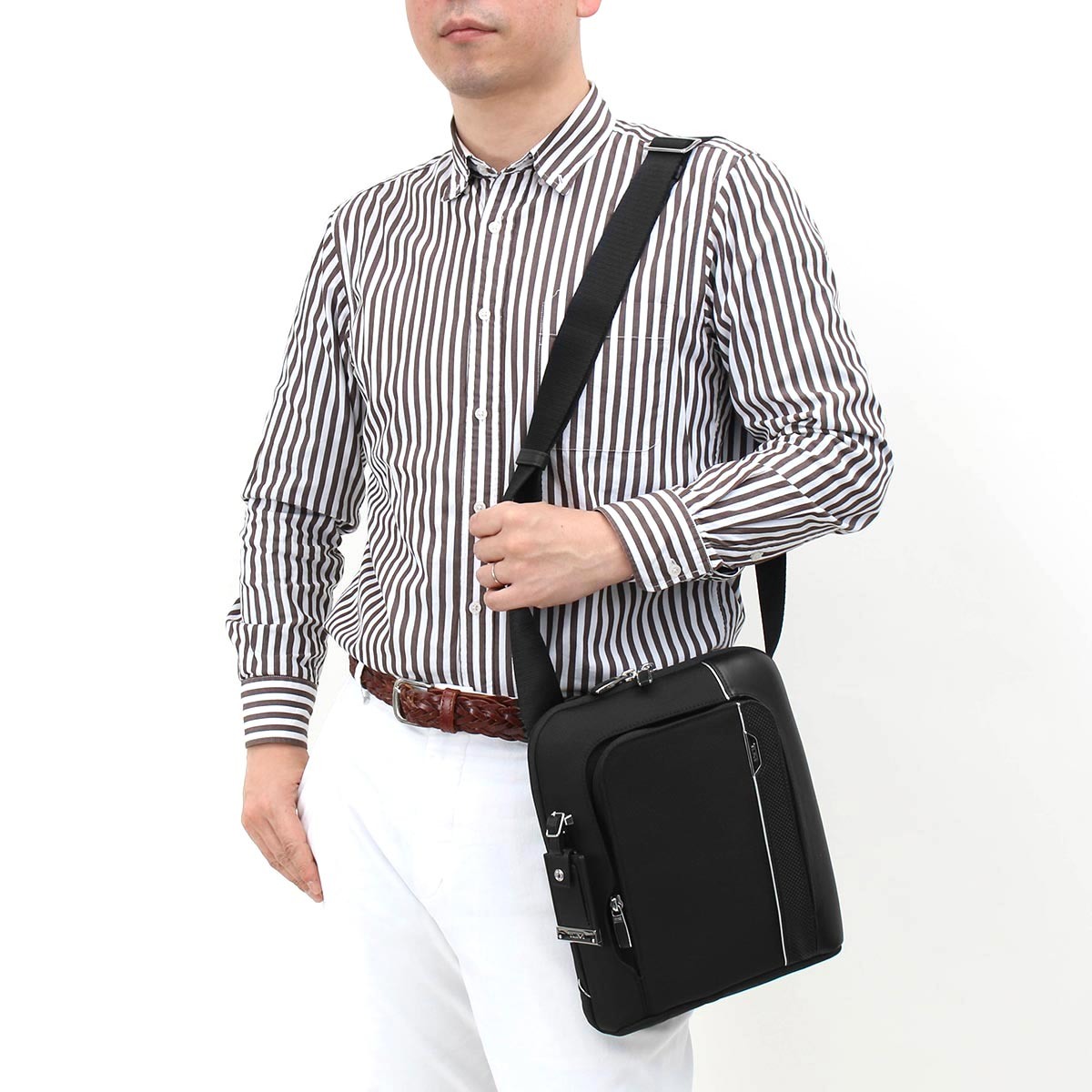 Сумка Tumi Arrive olten crossbody – это сумка через плечо бренда TUMI предназначена для сильного пола. Такой вариант сумок плотно вошел в нашу жизнь. Этот бренд отличается высоким качеством и стилем. Вся выпускаемая продукция имеет изящный дизайн, многофункциональность и использование индивидуальных передовых технологий при производстве каждой модели, а главное – надежность и качество. Данная модель сумки подойдет для работы, выходных дней и поездок, она универсальна, элегантна, стильна. Это тонкая, но вместительная сумка позволяет разместить планшет, ежедневник, паспорт, бумажник, все нужные документы и мелкие предметы первой необходимости. Для планшета внутри имеется мягкий карман. Также в сумке предусмотрено место для телефона, карман для карт, съемный кожаный брелок для ключей. Есть большой карман на молнии. Все карманы сумки с защитной подкладкой. Сумка является маленьким органайзером с грамотно проектированными отделениями. Ремень регулируется по длине и крепится в металлическ