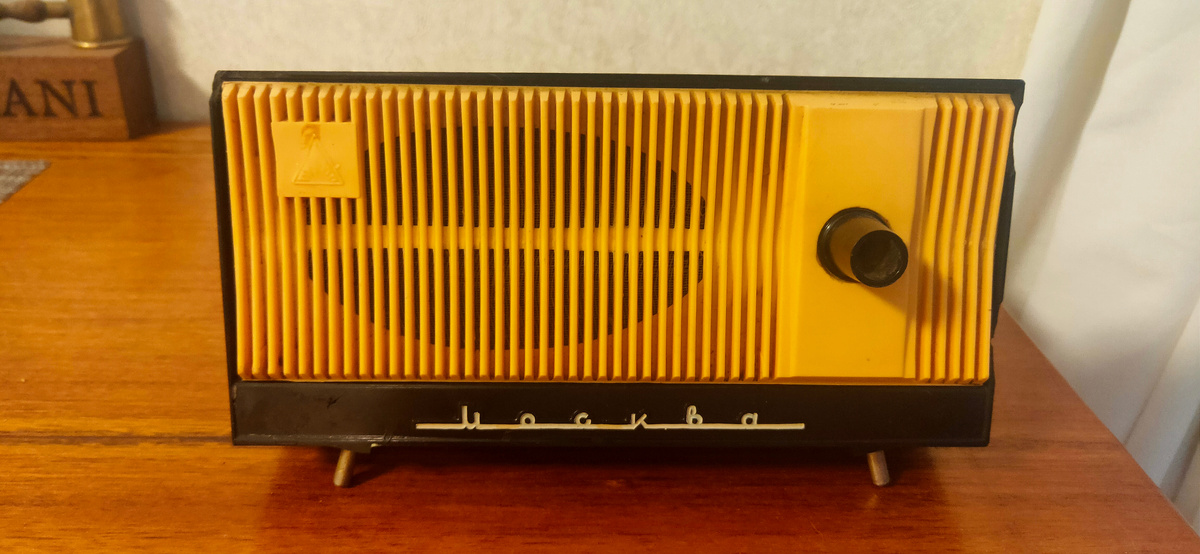 Статей про радио и аудиотехнику СССР скопилось довольно достаточно, и я их собрал в отдельную подборку моего канала. Поэтому про радиотехнику СССР всегда смотрим по ссылке ниже! Продолжаю публикацию устройств проводного вещания из своей коллекции родом из СССР. Тогда они были на каждой кухне (ну, в основном), а сейчас это уже история. По проводам вещать нам сейчас не хотят, да и дорого возобновлять эту технологию. Прошлый раз я показывал "Вестник ПТ-310". Теперь настало время для новых подобных устройств. Сегодня начнём со старичка, абонентского громкоговорителя "Москва". Ветеран, видимо долго стоял на чей-то кухне, спереди пожелтел основательно. Очень стильный, на ножках, передает атмосферу 60-х. Выпускался серийно с 1968-го Московским заводом электроаппаратуры. С обратной стороны стенка не сохранилась, но зато можно посмотреть начинку. Тут у нас громкоговоритель типа 0,15ГД-3-4, трансформатор и регулятор громкости. Диапазон воспроизводимых частот 200-4000 Гц. Цена была ему 5 руб. П