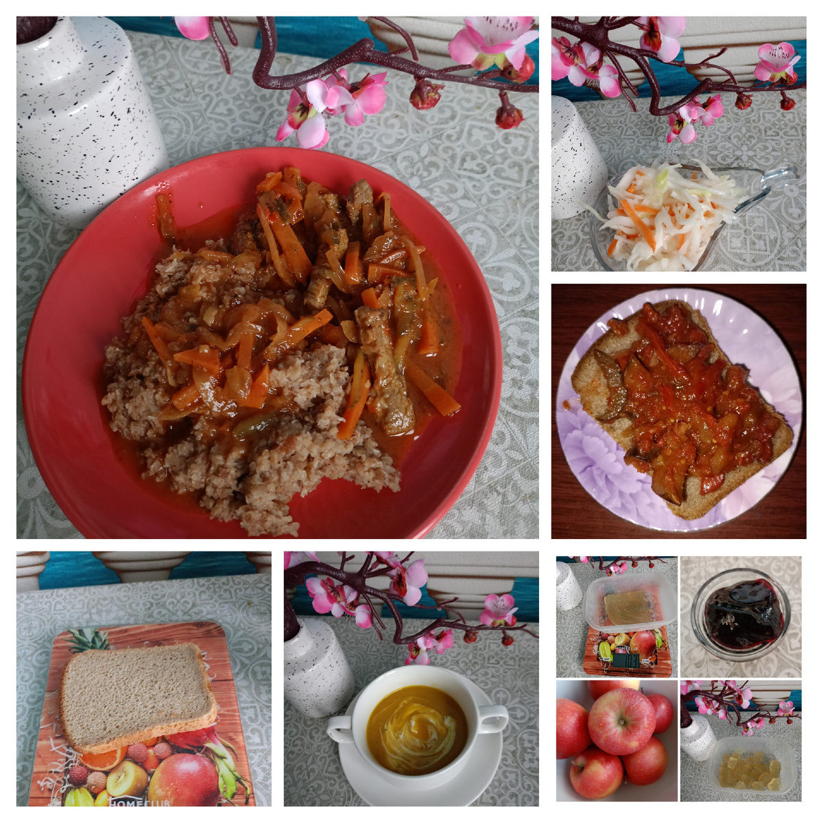 Всем привет! С Вами Татьяна, пенсионерка. Мне 73 года, рост 151 см, вес 56,4 кг ✅ 27.02.23 мой вес был 82 кг. В процессе своего похудения в течение года я сбросила 26 кг лишнего веса. Цель - нормальный вес 53-54 кг для роста 151 см. Это мой личный эксперимент, за которым вы наблюдаете на моем канале. Никому ничего не рекомендую и советов не даю, в споры не вступаю. Спасибо, что читаете! Чат для общения Орден Капустного Листа Если интересно про моё похудение Как я питалась в 2023 году, когда похудела на 25 кг? Дневник питания сейчас Для похудения жиры не должны превышать 25% в суточной норме. *** Соотношение БЖУ сегодня: 20/25/55 Что я съела сегодня: 1-й приём пищи 2-й приём пищи 3-й приём пищи 4-й приём пищи 5-й приём пищи это перекусы в течение дня Итог дня: *** Сегодня в плане питания азу из говядины с солёными огурцами без картофеля с гречневыми хлопьями, суп-пюре тыквенный на курином бульоне, лечо с баклажанами. И черный хлеб. На перекусы - куб