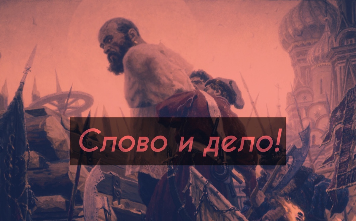 Фраза "Слово и дело государево" восходит к российским реалиям периода царской России и является символом не только доносов, но и системы жестоких наказаний за государственную измену.