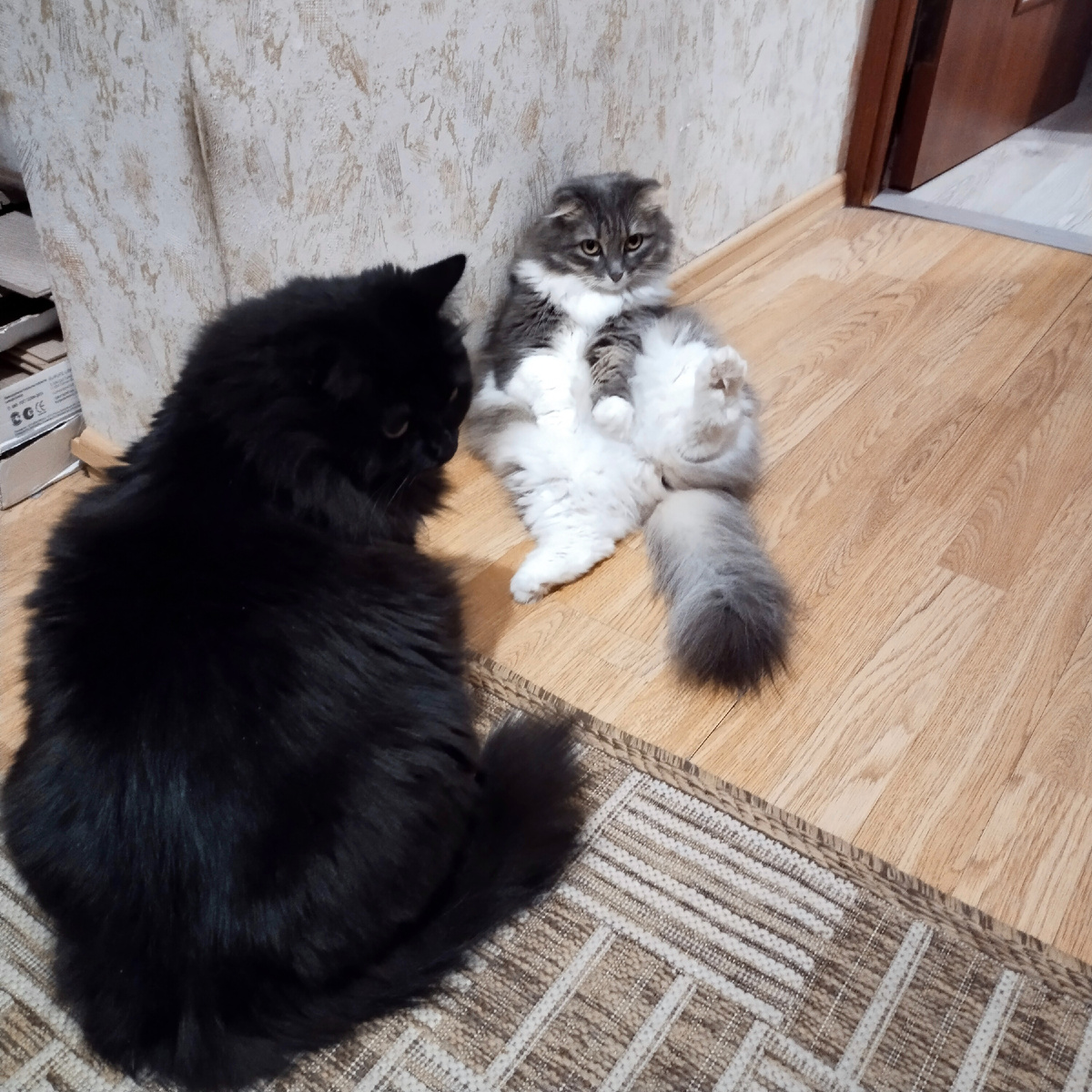Сегодня с самого утра долбил дождик. Я еле-еле встала на работу, и совершив подвиг, подняла на работу Сашку. Кошки даже есть особо не стали, пожевали вяло паштет и скучковались на диване, досматривать сны. На работе больше всего хотелось запереться в кабинете изнутри и упасть на такой уютный, такой мягкий велюровый диван. Не получилось. Видимо я была в тренде и долбёжка в дверь не прекращалась. Отработала я , если честно, на «отвяжись». Отбарабанила, можно сказать, смену. И едва дождавшись «гудка» укатила назад за мужем.. Кода мы подошли к квартире, мне показалось, что за дверью кто-то разговаривает. Сашка тоже напрягся. Значит показалось не только мне. - Бери столовое серебро! - раздался различимый мужской голос, - барахло брать не надо! - Ооооо!, - вторил ему женский, - я нашла шкатулку, тут бриллианты! - Саша, мне кажется, или у нас дома грабители? - Не знаю, Зай, - прорычал шепотом муж, - но сейчас узнаю! Сашка решительно завертел ключом в двери, а я успела подумать, что у меня н