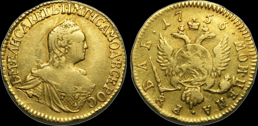 При Елизавете чеканились золотые монеты в полтину, 1, 2, 5 и 10 рублей. Монеты из драгоценных металлов в первую очередь шли для обеспечения внешнеторговых операций и оплаты расходов казны за рубежом.