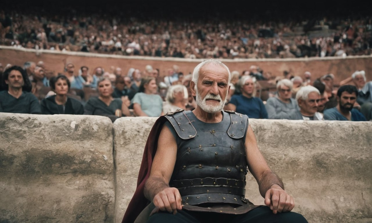 Он вошёл в амфитеатр, полный до краёв. Зрители гудели, предвкушая бой — фракиец должен был сразиться с львом и двумя гепардами. Первые ряды, как всегда, были заняты римской знатью. Молодые патриции, сытые и довольные, шумно обсуждали очередную игру, не обращая внимания на седого старика, что пробирался к месту.