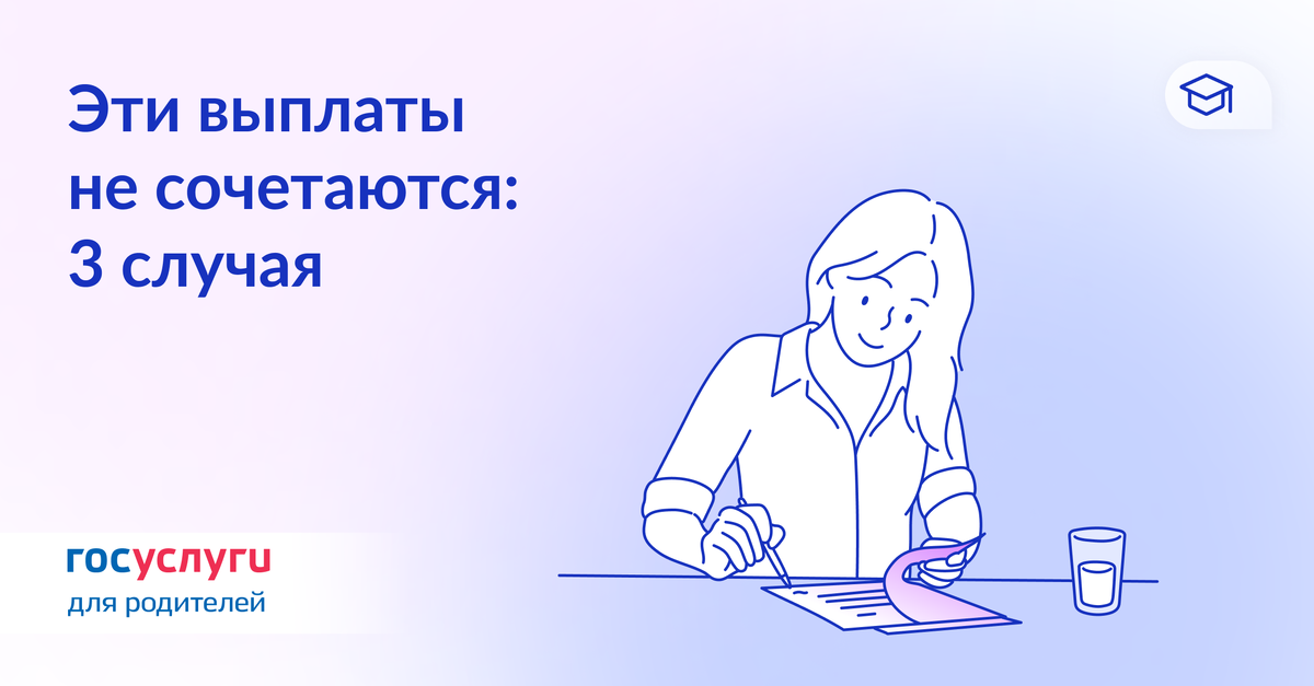 Некоторые выплаты можно получать одновременно. Например, единое пособие и выплату из маткапитала на ребенка до 3 лет. Но есть ситуации, когда совмещать разные виды господдержки не получится. Вот такие примеры. 🔹 Декретные и пособие до 1,5 лет на работе