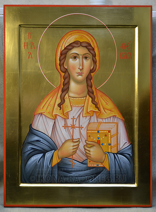 Первомц. равноап. Феклы (I). Прп. Коприя (530). Св. царя Стефана Сербского (1224) и сына его св. царя Владислава Сербского (после 1264). Прп. Никандра пустынножителя, Псковского чудотворца (1581). Прмч. Галактиона Вологодского (1612). Сщмч. Василия диакона (1918). Сщмчч. Андрея и Павла пресвитеров, прмч. Виталия и мчч. Василия, Сергия и Спиридона (1937). Мирожской иконы Божией Матери (1198). Фекла жила в Иконии (Средняя Азия), была дочерью знатных и богатых родителей и отличалась необыкновенной красотой. В 18 лет девушку обручили знатному юноше, но, услышав проповедь святого апостола Павла о Спасителе, Фекла твердо решила не вступать в брак, посвятив свою жизнь Евангельской проповеди. Возмущенный обручник Феклы пожаловался правителю города на апостола Павла, обвиняя его в том, что он отвратил невесту от жениха. Правитель заключил апостола в темницу, но Фекла, подкупив тюремных стражей, проникла к узнику. Три дня сидела она у ног апостола, внимая его отеческим наставлениям, пока ее не о