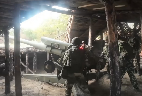 Расчет артиллеристов гаубицы Д-30 группировки войск «Днепр» поразил пункт управления Вооруженных сил Украины (ВСУ) в Херсонской области, передает пресс-служба Минобороны РФ. По данным ведомства, удар по противнику велся с закрытых огневых позиций при поддержке БПЛА. Расчет 122-миллиметровой буксируемой гаубицы Д-30 гвардейского соединения ВДВ из состава группировки войск «Днепр», выполняя огневую задачу, уничтожил пункт управления украинским подразделением на правом берегу Днепра в Херсонской области, — следует из заявления. Стрельба из гаубиц ведется на расстоянии до 15 километров с применением осколочно-фугасных боеприпасов, уточнили в МО. Скорость ударов достигает восьми снарядов в минуту. Ранее экипаж армейской авиации на вертолете Ми-28НМ уничтожил украинских военных в приграничном районе Курской области. Противник также потерял бронированную технику. После применения авиационных средств поражения бойцы благополучно вернулись на площадку вылета. Уничтожение личного состава и техни