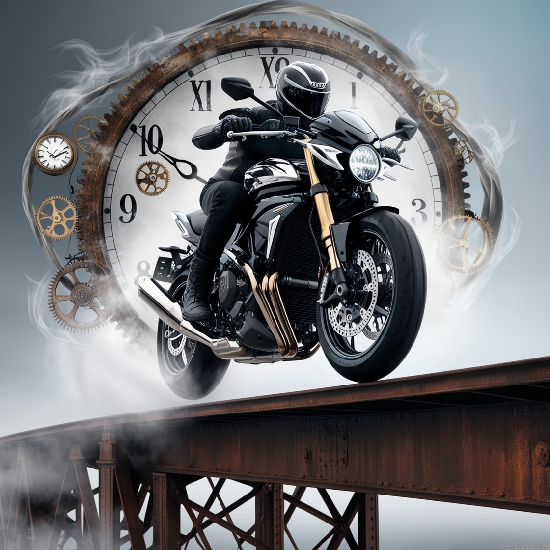 — Ну что, готов? — голос Паши был слегка напряжён, как будто он только что вышел из боевого симулятора. — Готов, — отвечаю ему, крепко сжимая руль своего байка. Этот утренний заезд обещал быть горячим. Адреналин уже закипал в крови, несмотря на прохладное октябрьское утро. Перед нами был участок шоссе, где можно дать волю скорости. Но на этот раз мы собрались не ради удовольствия. В руках у Паши был гаджет, который изменил нашу реальность всего пару дней назад. Маленькая, безобидная с виду коробочка, всего с одной кнопкой, случайно попала к нам после вечерней покатушки по набережной. Мы с Пашей тогда уже были на пределе сил, когда заметили его – "Ретранслятор времени", как значилось на непонятной табличке. Подумали, что это просто розыгрыш или очередной вирусный маркетинг. Но в тот вечер всё изменилось. Неделю назад, в той самой мастерской Паши, я впервые увидел его новый проект – кастомный Ducati. Черный, с матовым блеском металла, он выглядел как дикий зверь, готовый сорваться с мест