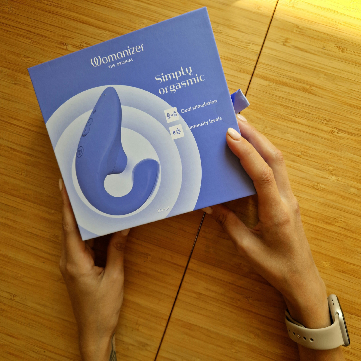 Доброго времени суток! Сегодня на нашем обзоре новый стимулятор двойного действия - яркий Womanizer Blend! Давайте начнем изучать его!) Womanizer Blend - это современная интерпретация классического вибратора-кролика с добавлением уже зарекомендовавшей себя, а сейчас - пожалуй и доминирующей на рынке секс-игрушек, технологией воздушной клиторальной стимуляции “Pleasure Air”. Blend - содержит два мотора - поэтому возможно независимое управление, как внешним так и внутренним воздействием, а больше возможностей индивидуальной настройки и контроля - больше удовольствия! Добавьте к этому удобную форму (и что немаловажно - вес!) для “однорукого” удержания, полную водонепроницаемость и впечатляющую глубину воздействия… в общем Womanizer Blend кажется очень перспективной игрушкой! Открываем упаковку, и кстати о ней… На красивой (да, красивой!) коробке Womanizer Blend спереди находится изображение продукта, а сзади - понятная информация об элементах управления и настройках. Есть также и стилизов