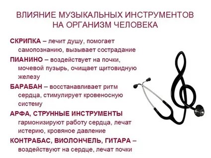 - Воздействие на разные системы органов. Музыкальные композиции влияют на глубину дыхания, скорость деятельности нейронных путей, сокращения сердца, расслабление или напряжение мышц.