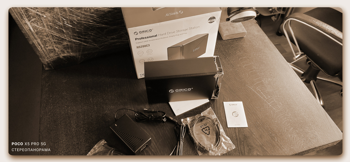 Это если по научному))). А если простым языком то DAS - это внешний HDD, который подключается к устройству кабелем USB. В моём случае в хранилище можно установить 2 диска объёмом до 10 тБ каждый. Но у этого же производителя (Orico) есть и модели по серьёзнее. Например с возможностью установки 4-х дисков. Естественно в комплекте идёт и внешний БП: от порта USB питания для дисков такого объёма не хватит. Есть и встроенный вентилятор для охлаждения. Работает кстати абсолютно бесшумно. Ещё в комплекте 2 кабеля USB (USB 3.1): один с разъёмом Type C с обоих сторон (на самом устройстве стоит разъём как раз USB Type C), второй с одной стороны USB Type C, а с другой - обычный USB-A. По комплектации это пожалуй всё (см.фотогалерею).