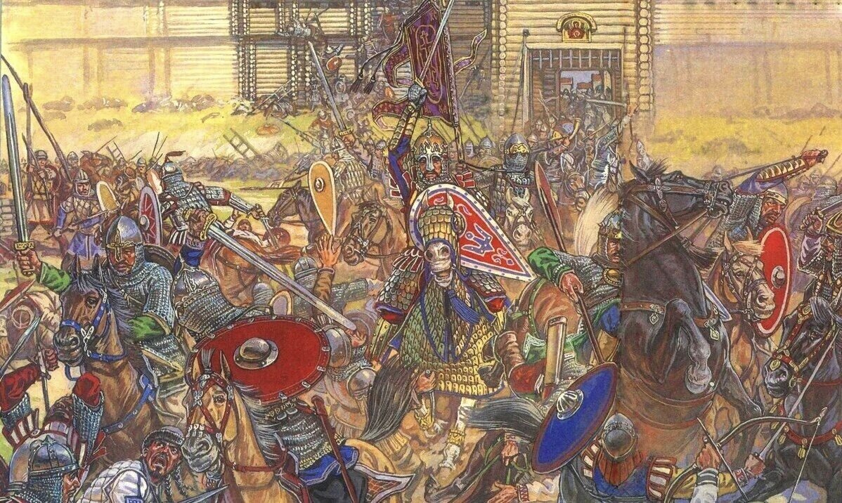 Шел 1036 год. В Новгород, к великому князю Ярославу Мудрому прискакал гонец. Принес он недобрые вести: "Печенеги вышли из степи и разоряя русскую землю движутся к Киеву. Надо поспешать, пока печенеги не выжгли все южные земли. Из Новгорода потянулась рать новгородцев и пришлых варягов. Как оказалось, Киев уже находился в осаде. Печенеги не стали препятствовать Ярославу и позволили ему, вместе с войском, войти в Киев. Усилив свое войско киевским ополчением, Ярослав вывел его в поле. Было решено дать бой под стенами стольного города. По центру Ярослав расположил варягов, на правом крыле заняли место киевляне, а на левом - новгородцы. Дружину свою Ярослав приберег в резерве. Печенеги, завидев русскую рать в поле, бросились в атаку. Конский топот сотрясал землю, облака пыли, казалось, вздымаются до небес. Оглушающий удар, треск ломающихся щитов и копий, возвестили о начале судьбоносного сражения. Главный удар печенежской конницы приняли на себя варяги. Их строй слегка прогнулся, но выстоял