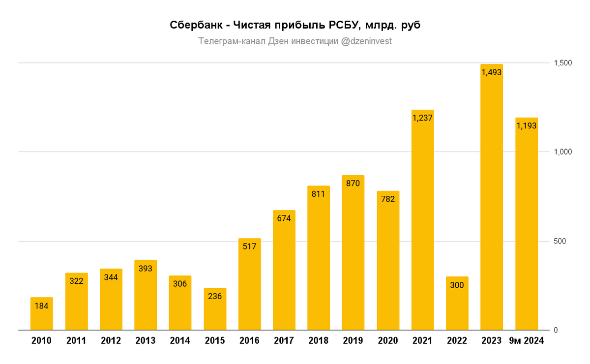 📌 Чистая прибыль Сбера за девять месяцев 2024 выросла на 5,7% г/г до 1 193,2 млрд рублей при рентабельности капитала в 23,9% $SBER 📌 В сентябре Сбер заработал 140,6 млрд рублей чистой прибыли (+8,0% г/г). Рентабельность капитала составила 26,3% 📌 Чистые процентные доходы за девять месяцев 2024 выросли на 14,5% г/г до 1 913,6 млрд руб 📌 Чистые комиссионные доходы за девять месяцев 2024 увеличились на 7,0% г/г до 550,8 млрд руб На 26,41 рубля дивидендов заработали за 9 месяцев при распределении 50% от прибыли ✅ Добавляйтесь к нам в Телеграм