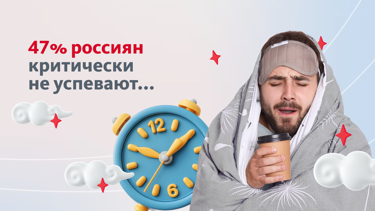 Время идет — проблемы плюс-минус остаются прежними. Так, 47% россиян постоянно недосыпают. Понимаем! Чтобы успевать жить продуктивную жизнь, никаких 24 часов не хватит.