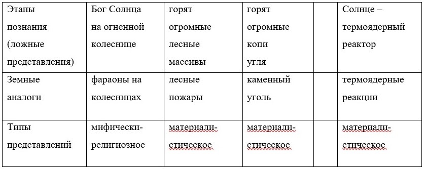Сначала рассмотрим этапы изменения представлений о Солнце при изучении его с помощью формальной логики.